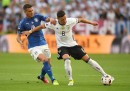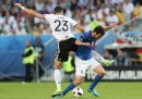 L’Italia è stata eliminata dagli Europei di calcio, ai quarti di finale contro la Germania. La partita nei tempi regolamentari e supplementari è finita 1-1, dopo il gol di Mesut Ozil per i tedeschi e di Leonardo Bonucci su rigore per noi. Ai calci di rigore l’Italia ha avuto qualche occasione per andare in largo vantaggio – molti tiri sbagliati – e si è andati a oltranza: soltanto al nono rigore la Germania ha avuto la meglio. La Germania giocherà la semifinale contro la vincente tra Francia e Islanda.