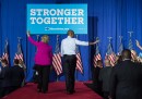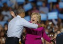 Il presidente degli Stati Uniti, Barack Obama, ha partecipato per la prima volta a un evento elettorale a sostegno della candidata dei Democratici alle elezioni dell’8 novembre, Hillary Clinton. Martedì 5 luglio a Charlotte, in North Carolina, Obama e Clinton sono arrivati insieme sull’Air Force One, l’aereo presidenziale. Dal palco Obama ha detto di essere «pronto a passare il testimone» e che Clinton lo raccoglierà. Diversi giornali hanno fatto notare la presenza insieme del primo presidente nero degli Stati Uniti e della possibile futura prima presidente donna come un momento esemplare del cambiamento del paese.