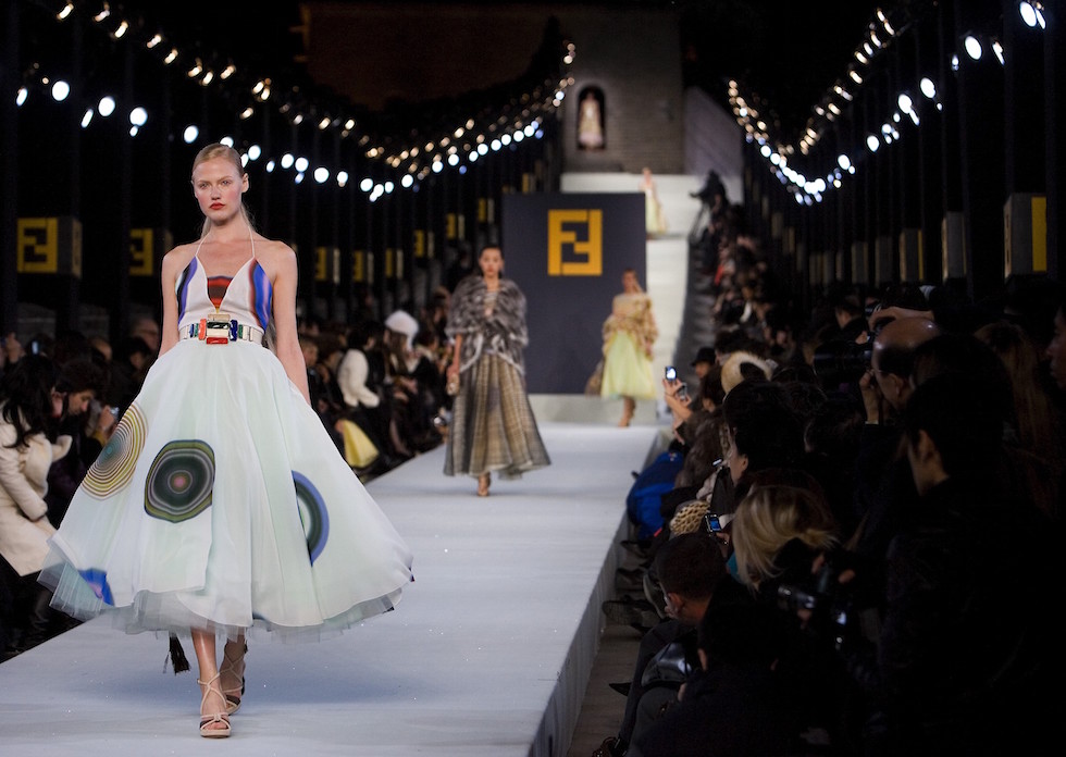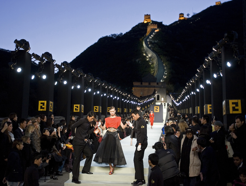 Per presentare la collezione primavera-estate 2008, Fendi organizzò una sfilata lungo la Grande muraglia cinese, a circa 90 minuti in automobile da Pechino, che si tenne il 19 ottobre 2007. Fu un vero e proprio spettacolo, anche perché la collezione era già stata presentata tre settimane prima a Milano. Sfilarono 88 modelle perché in Cina l’8 è considerato il numero della prosperità, e si pensa porti fortuna. L’evento costò circa 9 milioni di euro.
