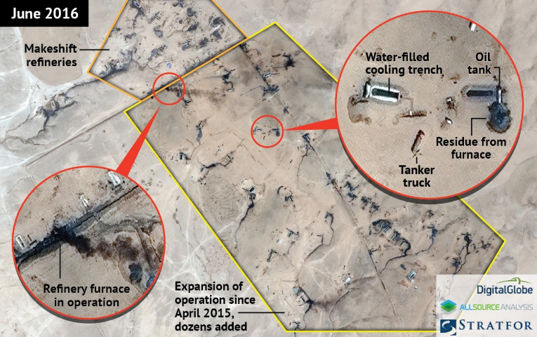 Nelle sue basi siriane, lo Stato Islamico usa da tempo sistemi simili, che oggi però stanno spuntando anche nei più organizzati (ma gravemente danneggiati) giacimenti iracheni, ha raccontato Omar Lamrani, analista della società privata di intelligence texana Stratfor. «In un unico giacimento di petrolio si possono trovare centinaia di queste strutture improvvisate», ha detto Lamrani, facendo riferimento alle immagini aeree che mostrano un’infinità di piccole fornaci intorno a un giacimento di Mosul dove l’anno scorso c’era quasi esclusivamente sabbia. «Non è il metodo ideale per farlo, e per questo le entrate del gruppo stanno diminuendo. Ma funziona». Il Washington Post ha ottenuto le immagini da Stratfor and AllSource Analysis, una società del Colorado specializzata in ricerca geospaziale.