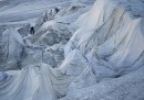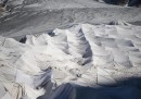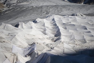 Da nove anni il ghiacciaio del Rodano, nel nord-est del Canton Vallese in Svizzera, viene coperto con dei teli bianchi per rallentarne lo scioglimento durante l’estate. Il ghiacciaio è il posto da cui nasce il fiume Rodano, che scorre per la maggior parte del suo percorso in Francia e sfocia nel Mar Mediterraneo poco a sud di Arles. Dal 1856 il ghiacciaio del Rodano si è assottigliato di 350 metri, 40 solo negli ultimi dieci anni. Se il ghiacciaio del Rodano o tutti i quelli delle Alpi si sciogliessero non ci sarebbe un grande aumento del livello dei mari, ma ci sarebbero gravi conseguenze ambientali a livello più locale lungo il percorso dei fiumi molti fiumi che nascono sulle montagne: un alto rischio di inondazioni nel primo periodo e carenza di acqua successivamente. È stimato che coprire il ghiacciaio con i teli bianchi ne riduca lo scioglimento del 70 per cento.