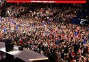 A Cleveland, negli Stati Uniti, la convention del Partito Repubblicano statunitense – a tratti caotica e imprevedibile – si è conclusa con il discorso di Donald Trump, l’imprenditore che ha vinto le primarie e che martedì è stato formalmente indicato come candidato del partito alle elezioni presidenziali dell’8 novembre. Intorno al discorso di Trump – trapelato sui giornali già nel tardo pomeriggio, diffuso da un comitato pro-Clinton – c’è stato il solito spettacolo delle convention americane, fatto di persone entusiaste, cartelli, spille, palloncini, musica e coriandoli: il discorso di Trump, però, è stato uno dei più tetri che si ricordi da parte di un candidato alla presidenza degli Stati Uniti.