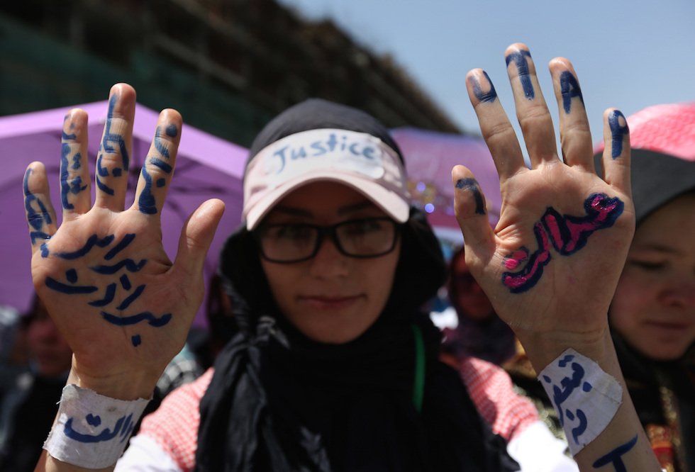 Una manifestante fotografata prima dell’esplosione (AP Photo/Rahmat Gul)