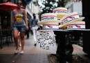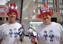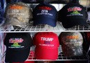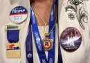 Tra gli altri immancabili elementi di questa grande baracconata ci sono stati moltissimi gadget, venduti nei baracchini ambulanti nelle strada di Cleveland e indossati a manciate dai delegati. Oltre ai soliti peluche, ciondoli, stickers e cravatte con l’elefantino, simbolo dei Repubblicani, ce n’erano molti sopra le righe, piuttosto violenti nei confronti di Hillary Clinton, candidata alla presidenza dai Democratici: parecchi cartelli e magliette con la sua foto erano infatti accompagnati dallo slogan “Hillary for prison”, “Hillary in carcere”. Folkloristici ma non meno inquietanti: un paio di pantofole a forma di letto con dentro l’ex presidente Repubblicano Ronald Reagan e la moglie Nancy; un mantello da supereroe con scritto sopra Trump; spillette che promettono che Trump sconfiggerà l’ISIS bombardandolo.