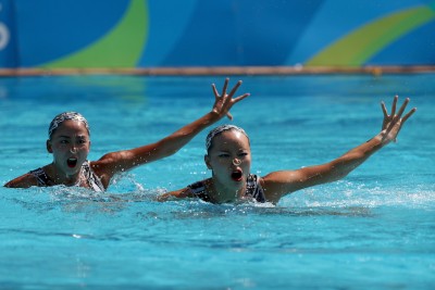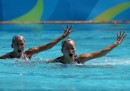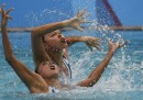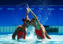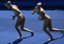Delle atlete del nuoto sincronizzato si parla sempre per la loro incredibile abilità, che permette di fare complicatissime coreografie in mezzo a una piscina dove la maggior parte di noi si può permettere solo un tuffo a bomba. Quello che spesso non viene raccontato, tuttavia, è che le complicatissime coreografie e le posizioni innaturali che le atlete devono assumere per poterle eseguire in acqua, spesso mostrano un lato un po’ spaventoso dello sport: facce apparentemente arrabbiate, sguardi pietrificanti, gesti aggressivi e posizioni anormali che sembrano uscite dagli incubi di un bambino. Queste foto sono un esempio di quello che si può vedere durante una gara di nuoto sincronizzato: sono state scattate alle Olimpiadi di Rio de Janeiro durante la gara di duo, in cui atlete della stessa nazionalità realizzano coreografie in coppia.