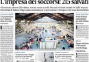 Le prime pagine dei giornali di oggi sono ancora dedicate interamente o quasi alle notizie sul terremoto nel nord del Lazio: i titoli di oggi riguardano il bilancio aggiornato delle vittime, il numero delle persone salvate dalle macerie nelle operazioni di soccorso, le polemiche sulla mancata costruzione di case con criteri antisismici, e le prime decisioni del governo per gli aiuti alle zone colpite dal terremoto. I quotidiani sportivi aprono sul sorteggio dei gironi della Champions League giudicati favorevoli per Juventus e Napoli, le due squadre italiane che partecipano alla competizione.