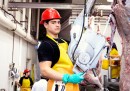 La Vermont Packinghouse è un impianto di macellazione con sede a North Springfield, nel Vermont, nel nord-est degli Stati Uniti. Ci lavorano circa 50 persone, esiste da due anni – prima c’era una ditta di gelati – e ha la particolarità di essere uno dei pochi macelli al mondo a essere completamente aperti al pubblico: basta chiamare, decidere un orario e viene organizzata una visita guidata all’interno dell’impianto di macellazione. Arian Thiboumery, che gestisce la Vermont Packinghouse, ha detto allo Huffington Post: «Ci sentiamo orgogliosi di quello che facciamo qui e vogliamo che tutto sia alla luce del sole. Vi descriveremo il modo in cui gli animali sono stati allevati e come sono morti. Non ce ne vergogniamo». La cosa ha attirato anche l’attenzione di Everett Meissner, un fotografo di New York che ha anche una casa nel Vermont: si è messo in contatto con Thiboumery e ad aprile ha scattato alcune fotografie all’interno della Vermont Packinghouse.