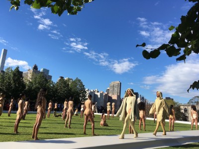 Alcune modelle dovevano restare in piedi nel prato, altre hanno sfilato su una passerella. In quest’occasione Kanye West non ha presentato nessuna nuova canzone, come aveva fatto nelle precedenti sfilate di Yeezy: durante Yeezy Season 1 aveva usato come colonna sonora la canzone “Wolves”, per Season 2 una versione non definitiva di “Fade” e per Season 3 l’intero disco The Life of Pablo.