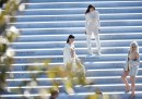 Ci sono stati problemi anche con le scarpe con i tacchi alti che fanno parte della collezione: una modella, Amina Blue, se le è tolte mentre sfilava, un’altra era chiaramente in difficoltà, secondo alcuni tra il pubblico, a causa di un difetto delle scarpe.