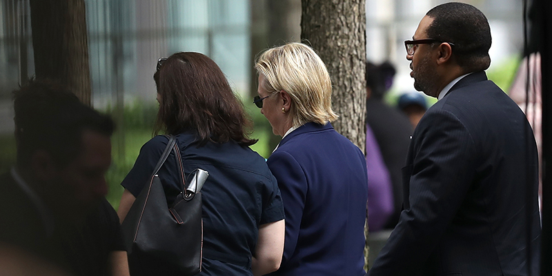 Hillary Clinton soffre di una tosse causata da alcune allergie. Venerdì, durante una visita di controllo per il suo disturbo, le è stata diagnosticata una polmonite. Le è stata prescritta una terapia a base di antibiotici, e le è stato consigliato di riposare e di modificare la sua agenda. Durante l’evento di questa mattina, si è disidratata e ha avuto un colpo di calore. L’ho visitata poco fa: è nuovamente idratata e si sta riprendendo normalmente.