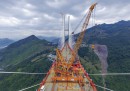 Nell’area montuosa nel sudovest della Cina, nella provincia del Guizhou, è in costruzione un ponte che diventerà il più lontano al mondo dal fiume sopra a cui passa: tra il ponte (noto come il ponte Beipanjiang) e il fiume sottostante ci sono infatti 565 metri. Il ponte sarà completato entro fine anno e servirà a ridurre di molto i collegamenti tra le città di Liupanshui (circa tre milioni di abitanti) e l’area di Xuanwei. Il ponte Beipanjiang è lungo circa 1.341 metri e sarà aperto al traffico a fine anno. Nel frattempo è stata completata una cosa importante, quando si costruisce un ponte: le due metà sono state collegate.