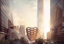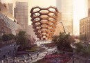 Il 14 settembre a New York la società immobiliare Related Companies ha presentato il progetto di Vessel, una torre che sorgerà in un parco all’interno di Hudson Yards, un nuovo complesso residenziale e commerciale in costruzione nella parte occidentale di Manhattan. Vessel sarà una via di mezzo tra una scultura e un’installazione artistica: sarà alta 45 metri, equivalenti a 15 piani, peserà 600 tonnellate e conterrà 154 scale collegate che in tutto conteranno 2.500 gradini: la sua struttura potrebbe ricordare quella di un alveare o di un disegno di M.C. Escher. Vessel non avrà un tetto – la struttura assomiglia anche a un vaso più largo in alto, dove avrà un diametro di 45 metri, che in basso, dove il diametro sarà di 15 metri circa – e al suo interno ci saranno 80 diverse piattaforme su cui le persone potranno fermarsi a guardare la città.