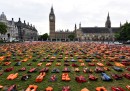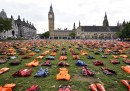 Migliaia di giubbotti di salvataggio usati dai migranti per arrivare in Europa via mare sono stati disposti a Parliament Square a Londra, davanti al palazzo di Westminster, sede del parlamento britannico. L’installazione è stata organizzata in occasione dell’Assemblea generale delle Nazioni Unite su migranti e rifugiati, che è iniziata oggi a New York: sono stati utilizzati 2.500 giubbotti di salvataggio usati soprattutto da persone siriane morte nel tentativo di raggiungere le isole greche dalla Turchia e che sono poi stati raccolti sull’isola di Chio. L’installazione rappresenta una sorta di cimitero per le migliaia di persone che dal 2015 sono morte nel tentativo di raggiungere l’Europa via mare: è stata organizzata dalla società di produzione Snappin’ Turtle Productions (in collaborazione con alcune organizzazioni umanitarie), che ha spiegato a Mashable di voler ricordare ai leader mondiali “il bisogno di essere solidali con i rifugiati” e incoraggiare “la condivisione di una responsabilità internazionale”. L’installazione verrà smantellata stasera.
