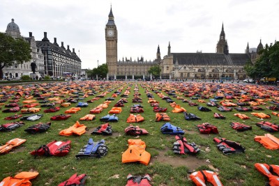 2.500 giubbotti di salvataggio usati da rifugiati morti nel tentativo di arrivare in Europa via mare sono stati esposti a Londra