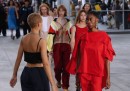 Virgil Abloh, che ha avuto molto successo nel settore dell’abbigliamento maschile grazie a giacche militari, magle e pantaloni decorati con motivi di graffiti, ha presentato la sua collezione femminile giovedì sera davanti a un pubblico che comprendeva Kanye West, Frank Ocean e diverse Kardashian. Come prevedibile, la collezione includeva felpe irriverenti e pantaloni da ragazza cool. Abloh, però, ha anche presentato il tipo di vestiti frivoli e con volant che si potrebbero trovare in una boutique polverosa nell’Upper East Side di New York. Cosa hanno a che fare vestiti come questi con il dibattito sullo street style che Abloh ha portato avanti così brillantemente? La moda sta cambiando. Per definirsi moderni, oggi basta abbinare una gonna da ragazza-che-debutta-in-società a una felpa con cappuccio.