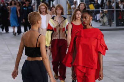 Cosa pensare per esempio di un marchio come Koché, con le sue felpe con cappuccio e le magliette disegnate da Christelle Kocher, che è anche la direttrice artistica di Lamarié, la casa di alta moda specializzata in piume e fiori di proprietà di Chanel? Kocher ha legato il suo marchio alla Parigi “reale” e in passato, aveva presentato la sua collezione in un vicolo sporco frequentato da tossicodipendenti. Per questa stagione ha scelto un caotico centro commerciale nel centro di Parigi, dove le persone venivano catapultate dalle scale mobili nel mezzo della sfilata. Guardando attentamente, ci si accorgeva che i vestiti erano realizzati in modo magnifico, con tessuti pregiati e decorazioni di lusso. Allontanandosi un filo, però, sembravano perfettamente al loro posto in mezzo a ristoranti, fast food e gli scaffali con i prodotti in offerta del centro commerciale.