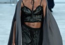 Una modella sfila per Junya Watanabe, Parigi, 1 ottobre 2016 (AP Photo/Zacharie Scheurer)