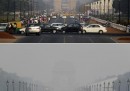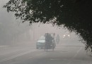 Domenica 30 ottobre in India e nelle comunità induiste di tutto il mondo si è festeggiato il Diwali, una grande festa in cui le strade e le case si riempiono di luci e candele e si scoppiano petardi e molti fuochi d’artificio. A causa dei festeggiamenti, oggi New Delhi si è svegliata in quella che sembra nebbia: in realtà è in gran parte il fumo dei petardi e dei fuochi d’artificio (almeno il 60-70 per cento, secondo gli esperti). I livelli misurati di particolato fine in aria (gli inquinanti conosciuti come PM 2.5) hanno superato in alcune zone anche di 30 volte il limite di sicurezza stabilito dall’Organizzazione Mondiale della Sanità. Dalle agenzie fotografiche sono arrivate tante foto della città avvolta nella nebbia, oltre a quelle che gli abitanti stanno postando su Twitter.