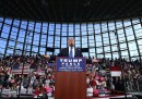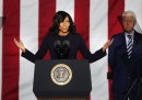 Clinton ha iniziato la giornata a Pittsburg, in Michigan, uno stato operaio, con molti maschi bianchi non laureati che sono tra gli elettori dove Trump è più forte, e dove ha rimontato tra i sondaggi negli ultimi giorni. Di sera si è svolto il più grosso e partecipato evento dei suoi 19 mesi di campagna elettorale – c’erano circa 33 mila persone – davanti all’Independence Hall di Philadelphia, in Pennsylvania, la città dove si è anche tenuta la Convention Democratica: sono saliti sul palco insieme a lei il marito, l’ex presidente Bill Clinton, la figlia Chelsea e Michelle e Barack Obama, e si sono poi esibiti Bruce Springsteen e Jon Bon Jovi. Clinton ha poi concluso la campagna elettorale con un evento a Raleigh, in North Carolina, insieme a Lady Gaga e di nuovo Bon Jovi.