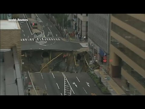 È crollata una strada nel centro di Fukuoka, probabilmente a causa dei lavori di costruzione della vicina metropolitana