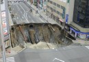 Le foto dell’enorme voragine che si è aperta in Giappone