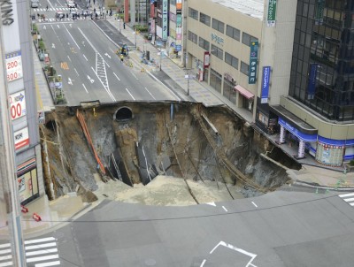 Una grossa voragine si è aperta in una strada centrale di Fukuoka, una città nel Giappone meridionale. L’incidente è avvenuto alle 5 di stamattina, ora locale: è iniziato con due buchi ai lati della strada che poi è crollata definitivamente formando una voragine larga circa 30 metri. Il crollo ha provocato fughe di gas e ha lasciato alcune zone della città senz’acqua corrente ed elettricità. Nessuno è rimasto ferito nell’incidente, che secondo l’autorità dei Trasporti di Fukuoka è stato causato dai lavori di costruzione di una fermata vicina della metropolitana.