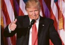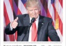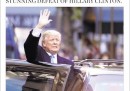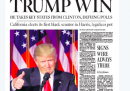 Nella notte italiana tra martedì e mercoledì Donald Trump ha vinto le elezioni americane, e a partire dal prossimo gennaio sarà il 45esimo presidente degli Stati Uniti. Trump, che era candidato con il Partito Repubblicano, ha battuto Hillary Clinton, la candidata del Partito Democratico: ha ribaltato tutti i pronostici e ha vinto in molti stati considerati in bilico prima del voto e in importanti stati in cui si pensava avrebbe avuto scarse possibilità di vittoria. Trump ha già fatto il suo discorso da futuro presidente degli Stati Uniti e Clinton gli ha telefonato per riconoscere la sconfitta. Obama ha telefonato a Trump per invitarlo alla Casa Bianca giovedì 10 novembre e alle 15.30 di oggi Clinton farà un discorso, il primo dopo la sua sconfitta. Il Post sta seguendo la giornata con un liveblog, queste sono le prime pagine dei principali quotidiani statunitensi, la mattina dopo.