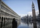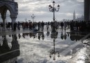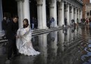 “Acqua alta” è un’espressione che, a pensarci bene, viene associata solo a Venezia: descrive in modo rapido ed efficace quel fenomeno che si verifica quando picchi di marea particolarmente alta causano un parziale allagamento delle parti più basse di Venezia, tra cui San Marco, la sua piazza principale. Capita più volte l’anno, soprattutto in autunno e primavera, e nella maggior parte dei casi non crea disagi esagerati e, anzi, permette ai turisti dotati con macchina fotografica di fare foto diverse dal solito. Come ha scritto Venezia Today, negli ultimi giorni l’acqua alta ha raggiunto il codice gialli (per valori che si definiscono “sostenuti” e in certi punti è arrivata a oltre un metro. A fare le foto in piazza San Marco tra i tanti turisti stamattina c’era anche il fotografo Marco Bertorello.