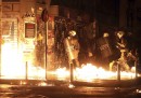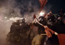 Il sito di news greco Ekathimerini ha scritto che gli scontri sono cominciati quando i manifestanti hanno cercato di rompere i cordoni formati dalla polizia per proteggere l’edificio del parlamento e l’ambasciata statunitense. Gli agenti in tenuta antisommossa hanno sparato delle granate assordanti e gas lacrimogeni contro i manifestanti, che a loro volta hanno lanciato due bombe molotov contro la polizia prima di disperdersi nelle strade vicino a piazza Syntagma. La polizia ha arrestato sei persone che hanno partecipato agli scontri.