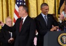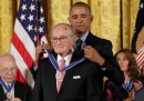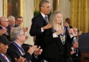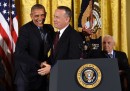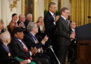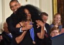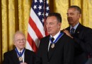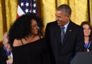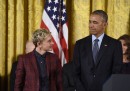 Martedì sera, con una cerimonia alla Casa Bianca, il presidente degli Stati Uniti Barack Obama ha consegnato a 21 personalità importanti in diverso modo per la cultura americana le Presidential Medal of Freedom, la più alta onorificenza civile statunitense. Tra le persone premiate ci sono celebrità come Michael Jordan, Bruce Springsteen, Robert Redford, Tom Hanks, Robert De Niro, Diana Ross e Ellen DeGeneres (che dopo aver quasi perso la cerimonia per essersi dimenticata la carta di identità si è molto commossa per il bel discorso di Obama) e meno noti ma importantissimi architetti, scienziati, artisti, avvocati e scrittori (qui trovate la lista completa dei vincitori di quest’anno).