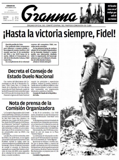 Come succede spesso con gli avvenimenti che interessano tutto il mondo, guardare come trattano della morte dell’ex presidente cubano Fidel Castro le prime pagine dei giornali di tutto il mondo è utile per capire qualche pezzo di storia in più. Ovviamente i giornali cubani Granma e Juventud Rebelde lo celebrano, mentre quelli statunitensi pubblicati in Florida, e soprattutto quelli in lingua spagnola, festeggiano più o meno esplicitamente la sua morte, perché tra i loro lettori molti sono persone scappate dal regime cubano. In generale, i giornali americani sono piuttosto critici, ma ci sono diverse eccezioni, come il Washington Post, che definisce Castro «un rivoluzionario che rifece Cuba». Anche la maggior parte dei quotidiani europei non esprime giudizi netti, mentre su quelli sudamericani per Castro ci sono soprattutto buone parole.