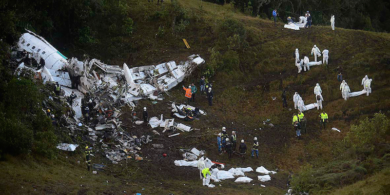 Un aereo che trasportava 77 persone, tra cui i giocatori della squadra di calcio brasiliana Chapecoense, è precipitato in Colombia nella notte tra lunedì e martedì. A bordo c’erano 68 passeggeri e 9 membri dell’equipaggio (qui è stata pubblicata una lista delle persone che erano sul volo): sono morte 71 persone, sei sono sopravvissute e sono ricoverate in ospedale.