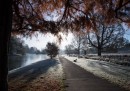 Stamattina a molti sarà capitato di notare un freddo particolarmente pungente e un po’ di brina sul cruscotto dell’auto, quando sono usciti per andare al lavoro (al Post qualcuno è arrivato a temere il congelamento delle dita, ma esagerava). Si sono trovati in una situazione simile anche nel Regno Unito, dove stamattina le temperature erano sotto lo zero, ma le condizioni atmosferiche hanno reso tutto molto fotogenico: due fotografi di Getty Images hanno scattato belle foto della nebbiolina che si alza, della brina che sembra neve e dei laghi che si ghiacciano per le prime volte, con il rosso e l’arancio dell’alba che sfumano quello che ci sta intorno.