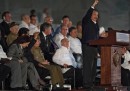 Martedì sera a Plaza de la Revolución, a L’Avana, si è tenuta una grande manifestazione in onore dell’ex presidente e dittatore Fidel Castro, morto a 90 anni la notte tra venerdì 25 e sabato 26 novembre. Alla manifestazione hanno partecipato migliaia di persone e sono intervenuti alcuni capi di Stato e di governo, oltre che l’attuale presidente di Cuba Raúl Castro: c’erano il primo ministro greco Alexis Tsipras e i presidenti di Venezuela (Nicolas Maduro), Bolivia (Evo Morales), Zimbabwe (Robert Mugabe) e Sudafrica (Jacob Zuma), tra gli altri. Fino al 4 dicembre a Cuba è stato indetto un lutto nazionale: nei giorni scorsi ci sono state lunghe code per fare visita al memoriale di Castro, da oggi le sue ceneri saranno portate in giro nel paese ripercorrendo le tappe della rivoluzione cubana fino a Santiago de Cuba, dove saranno seppellite. I funerali di Fidel Castro si terranno all’Avana il 4 dicembre e si parla già molto di chi parteciperà: diversi capi di stato e di governo hanno già annunciato che non parteciperanno o manderanno solamente delle delegazioni, persino alcuni degli storici alleati di Cuba degli ultimi decenni.