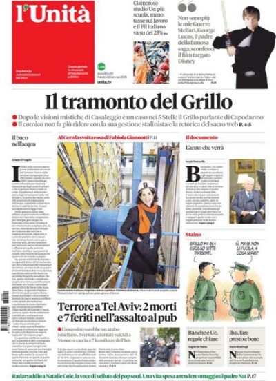 Ma probabilmente il viso più presente sulle prime pagine italiane del 2016 è purtroppo un altro, quello di Giulio Regeni, il ragazzo italiano ucciso in Egitto. Poi c’è naturalmente molto terremoto, anche con titolazioni che avrebbero meritato maggior rigore e minore drammatizzazione, dove non ne mancava. Quanto alle enfasi, alle aggressività, al misto tra violenza e cabaret di certe prime pagine, a rivedere oggi tutte le prime pagine pubblicate in un anno ogni mattina dal Post, colpisce una sintonia – e difformità rispetto agli altri giornali – di un gruppo formato da Libero, Giornale, Fatto, Tempo, e ora anche Verità, il quotidiano fondato quest’anno e aggiunto all’antologia quotidiana.