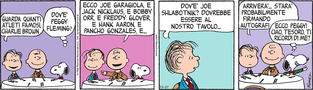 I PEANUTS sono la striscia a fumetti più famosa del mondo, pubblicata quotidianamente tra il 1950 e il 2000, quando morì a 77 anni il suo autore Charles Schulz. Ancora oggi le repliche delle strisce sono distribuite e pubblicate ogni giorno sui quotidiani di decine di paesi del mondo: in Italia, dal Post. La popolarità e l’influenza della striscia – e dei suoi personaggi più famosi, soprattutto Charlie Brown, Snoopy, Linus – si è estesa nel tempo a tutti i media e alla vita quotidiana di mezzo mondo, attraverso i loro caratteri, le loro battute, il radicamento delle loro consuetudini, e una quantità straordinaria di efficacissimi aforismi e citazioni. Le frustrazioni, insicurezze, illusioni, ansie, dei personaggi bambini hanno sempre rispecchiato quelle dei lettori adulti aggiungendovi tenerezze infantili che hanno sempre appassionato i lettori bambini: costruendo nel tempo un successo presso generazioni diversissime. Il nome Peanuts venne scelto dal distributore della striscia citando quello di un pubblico di bambini in uno show televisivo dell’epoca, e si è sempre detto che a Schulz non piacesse. Ma come dice Lucy Van Pelt, «più si invecchia, meno si è sicuri rispetto a un sacco di cose».