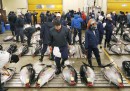 Il 5 gennaio un tonno rosso da 212 chilogrammi è stato venduto al mercato ittico di Tsukiji, cioè il mercato del pesce di Tokyo, in Giappone, per 74,2 milioni di yen, equivalenti a più di 600mila euro. Il tonno è stato comprato durante l’asta di inizio anno da Kiyoshi Kimura, presidente di Kiyomura, la società che gestisce i ristoranti sushi della catena Zanmai. L’asta di inizio anno del mercato di Tsukiji è un evento molto pubblicizzato, per questo i gestori dei ristoranti di Tokyo fanno offerte molto alte per farsi pubblicità. È il sesto anno consecutivo che Kimura fa l’offerta più alta: ha speso 350mila yen (2.860 euro) al chilo per il tonno che ha acquistato. Normalmente il tonno non si paga così tanto, altrimenti un singolo pezzo di sushi al tonno costerebbe 25 volte di più dei 400 yen (3,3 euro) a cui di solito viene venduto nei ristoranti di Zanmai.