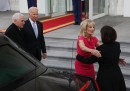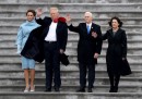 Oggi Donald Trump, che ha vinto le elezioni statunitensi dello scorso 8 novembre 2016, ha prestato giuramento a Washington DC ed è diventato ufficialmente il quarantacinquesimo presidente degli Stati Uniti. Mike Pence, ex governatore dell’Indiana, è il vicepresidente. La cerimonia è iniziata alle 17.30 ora italiana, ma dalle 15.30 erano in corso preparativi e concerti in vista del giuramento, che è stato seguito da un discorso pronunciato da Trump. Di seguito trovate le foto della giornata, man mano che arrivavano, mentre qui potete seguire il liveblog del Post.