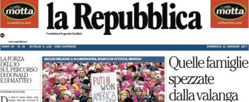 Le prime pagine di domenica 22 gennaio 2017