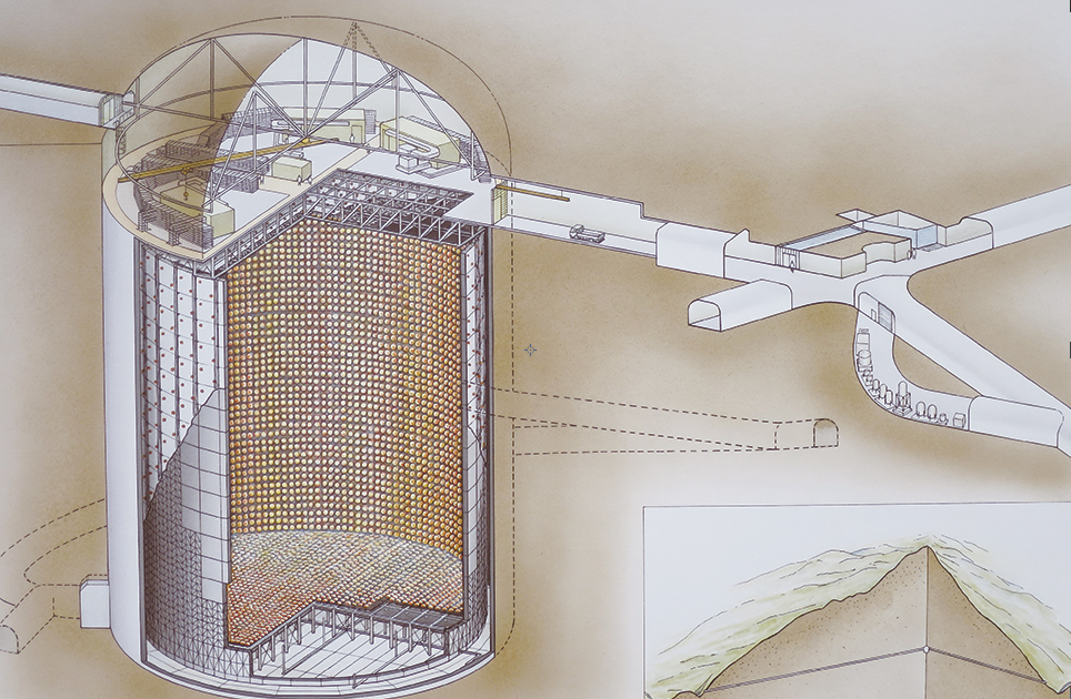 L’osservatorio Super-Kamiokande in Giappone (mostrato nello schema qui sotto) così come il Sudbury Neutrino Observatory nell’Ontario (Canada) si rivelarono fondamentali per dimostrare la mutazione dei neutrini, scoperta che nel 2015 è valsa il premio Nobel per la Fisica a Takaaki Kajita e Arthur B. McDonald.
