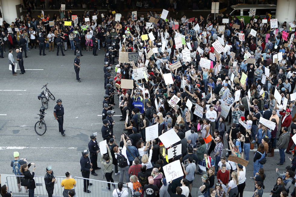 In diversi aeroporti internazionali degli Stati Uniti, la situazione è stata molto confusa. Quando hanno cominciato a presentarsi i primi problemi e la polizia ha fermato le prime persone alla frontiera, sono cominciate manifestazioni di protesta che si sono via via allargate nel corso del fine settimana e sono continuate fino a domenica notte: migliaia di persone in tutti gli Stati Uniti hanno protestato contro l’ordine esecutivo di Trump e contro quella che a molti è sembrata una discriminazione religiosa. Trump aveva promesso in campagna elettorale un cosiddetto “muslim ban”, il divieto di accesso negli Stati Uniti per le persone provenienti da paesi musulmani, e nonostante questo non sia un “muslim ban” – il suo ordine esclude moltissimi paesi a maggioranza musulmana, i cui abitanti possono continuare a entrare negli Stati Uniti – in molti hanno collegato le due cose.