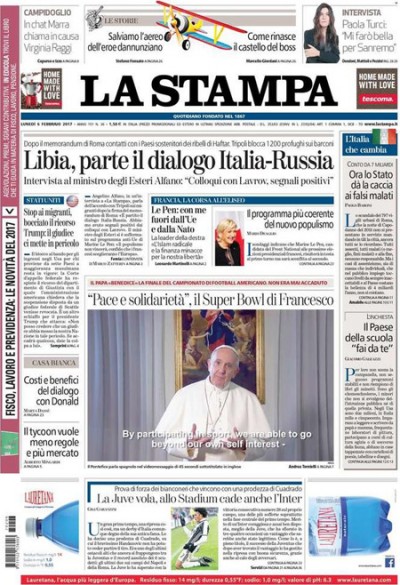 Le prime pagine di lunedì 6 febbraio 2017