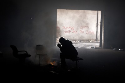 Muheisen è arrivato a Belgrado due settimane fa e ha intenzione di rimanerci ancora per qualche settimana, dopo essere stato un mese nei campi profughi in Grecia (dove ha realizzato questo progetto sulle foto che i siriani tengono con sé). Muheisen ha spiegato al Post che l’ambiente in cui vivono i migranti è sporco e non salutare: in queste settimane fa molto freddo e per scaldarsi passano la giornata accanto ai falò, con il fumo che rende l’aria irrespirabile. Muheisen, ha raccontato sempre al Post, ha cercato di trascorrere più tempo possibile nel magazzino poter raccontare meglio quello che i rifugiati devono affrontare ogni giorno: