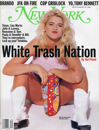 Dopo la copertina di Playboy, Smith firmò un contratto con Guess rimpiazzando Claudia Schiffer, e cambiò il suo nome in Anna Nicole Smith. La sua carriera decollò molto in fretta, con campagne pubblicitarie per H&M (con le quali si fece conoscere in Europa) e copertine di alcune delle più importanti riviste di moda americane. La sua somiglianza con altre famosissime modelle e attrici bionde del passato, come Marylin Monroe o Jayne Mansfield, la rese in fretta molto richiesta, e nel 1993 fu eletta Playmate of the Year. Il New York Magazine nel 1994 usò una sua foto per illustrare in copertina un articolo intitolato “White Trash Nation”, sostanzialmente contro tutto quello che Smith rappresentava. Smith fece causa alla rivista, accusandola di averla ingannata: pensava che il senso delle foto per le quali aveva posato fosse diverso.