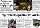 Ci sono notizie diverse in apertura sui quotidiani di oggi: alcuni si occupano ancora della situazione del comune di Roma, con le ipotesi di sostituzione dell’assessore dimissionario Berdini e le indagini che riguardano il sindaco Raggi e alcuni suoi collaboratori, altri titolano sul deposito da parte della Corte Costituzionale delle motivazioni della sentenza sulla legge elettorale. La Stampa apre invece sull’incontro a Berlino fra il cancelliere tedesco Merkel e il presidente della Banca Centrale Europea Draghi, il Sole 24 Ore titola sui dati della lotta all’evasione fiscale nel 2016, e Repubblica segue i movimenti nel Partito Democratico in vista della direzione di lunedì prossimo.