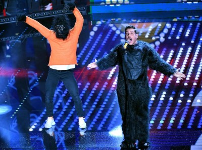 Le smorfie di Giorgio Moroder, il selfie fra conduttori e Francesco Gabbani vestito da gorilla, tra le foto più belle di ieri