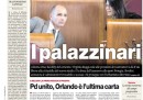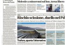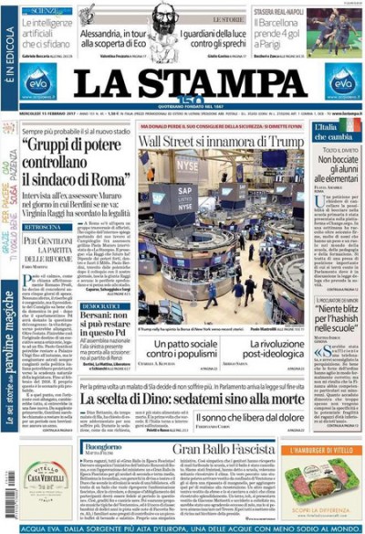 Ci sono notizie diverse in apertura sui giornali di oggi: alcuni aprono sul confronto fra minoranza e maggioranza del Partito Democratico in vista dell’assemblea fissata per domenica che dovrebbe decidere la data del congresso, e danno sempre maggiore credibilità all’ipotesi della scissione; altri si occupano del Movimento 5 Stelle, con le dimissioni irrevocabili dell’assessore all’urbanistica del comune di Roma Berdini dopo l’incontro di ieri sullo stadio della Roma che sembra avere dato un primo ok alla costruzione, e con la polemica sugli sms di Di Maio su Marra pubblicati ieri da alcuni giornali; altri ancora titolano sull’avviso di garanzia ricevuto dall’ex presidente della Camera Fini, accusato di riciclaggio per la vicenda della casa di Montecarlo. I quotidiani sportivi presentano la partita di stasera di Champions League fra Real Madrid e Napoli, andata degli ottavi di finale.