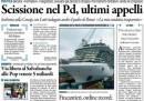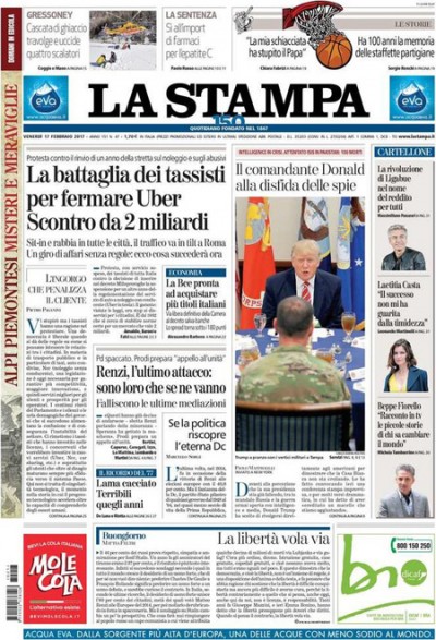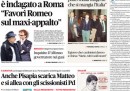 Le notizie in apertura sui principali quotidiani di oggi sono le trattative e i tentativi di mediazione nel Partito Democratico in vista dell’assemblea di domenica per evitare la scissione, che secondo la maggior parte dei giornali è ormai quasi certa, le proteste di ieri dei tassisti in molte città contro la norma inserita nel decreto “milleproroghe” che secondo loro favorisce Uber, e gli sviluppi dell’indagine Consip per la quale è indagato dalla procura di Roma anche il padre di Renzi per traffico di influenze illecite.