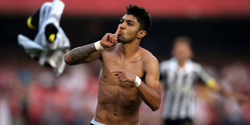 A Gabriel Barbosa un talento lo si riconosce, finora però garantito solo da chi lavora nell’ambiente, e per tutti gli altri da YouTube. Ha vent’anni, gioca come ala destra ed è stato l’attaccante della nazionale brasiliana che a Rio de Janeiro ha vinto la prima medaglia d’oro olimpica nel calcio nella storia del paese. Ha segnato poco più di una ventina di gol nei suoi tre anni passati al Santos, nella Serie A brasiliana, ma i gol non dovrebbero essere la sua specialità: è bravo nello smarcarsi e nel far smarcare i compagni, e a saltare in dribbling gli avversari. Ha avuto una crescita costante ma lenta, a detta di chi ha potuto vederlo, come l’ex allenatore brasiliano di Milan e Inter Leonardo, e di lui si è iniziato a parlare molto e con insistenza solo la scorsa estate. L’Inter non lo ha preso alla cieca: in estate sia il Barcellona che la Juventus, secondo i giornali, avevano avuto contatti con il Santos e con il suo agente, per l’ipotesi di un suo trasferimento. Qualche mese fa Josep Maria Bartomeu, il presidente del Barcellona, parlando a un’emittente radiofonica spagnola aveva detto di volere intentare causa al Santos, perché vendendo Barbosa all’Inter i dirigenti brasiliani non avrebbero rispettato l’opzione del Barcellona sul suo trasferimento ottenuta tre anni prima, nell’acquisto di Neymar: magari non lo avrebbero preso ugualmente, ma essere opzionati dal Barcellona è qualcosa.