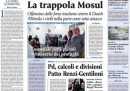 È ancora la scissione della minoranza del Partito Democratico la notizia di apertura per la maggior parte dei quotidiani di oggi, anche in assenza di grosse novità dopo la riunione dell’assemblea del partito di domenica; oggi i giornali sottolineano le possibili divisioni all’interno del gruppo che dovrebbe uscire dal partito, in assenza di conferme ufficiali delle decisioni annunciate. Avvenire titola invece sulla nuova fase della battaglia per la riconquista di Mosul da parte delle truppe che combattono l’ISIS, con l’offensiva delle truppe irachene verso la città.
